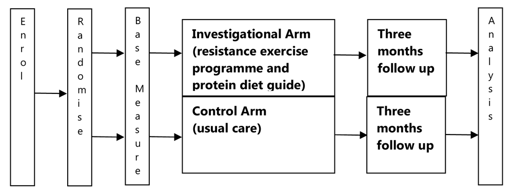 An intervention with ten recommended resistance exercises and dietary guidance on protein consumption has been derived from findings of our systematic review6 and meta-analysis7 and optimised through a patient and public involvement (PPI) process.
