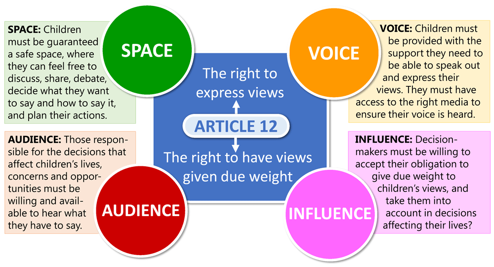 The four key elements of space, voice, audience, and influence are essential for children’s participation in decision-making to be effective, meaningful, and compliant with their rights.