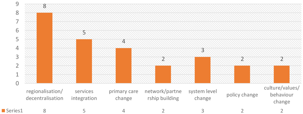 • Focussed on a single or specific change e.g. financing, health insurance (8)