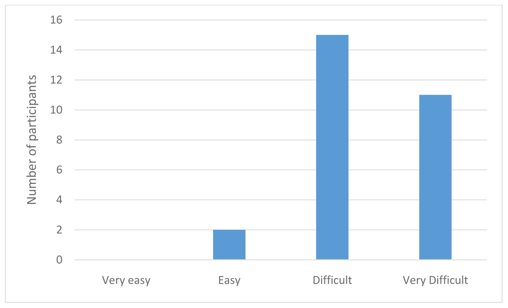 Healthcare access. The majority of participants found it easy to access health information except in the instances where that health information was LGBTQI+ specific. For example, the majority of participants declared that it was easy to find information on health issues that concern them, such as screening or regular health treatments, understand what their doctor said to them, judge the quality of health information from different sources, and to get the information they need from their doctor. However, when asked whether they found it easy to find health information from general sources that address the needs of LGBTQI+ people, the majority of participants stated that this was difficult or very difficult, as illustrated by Figure 2 below.