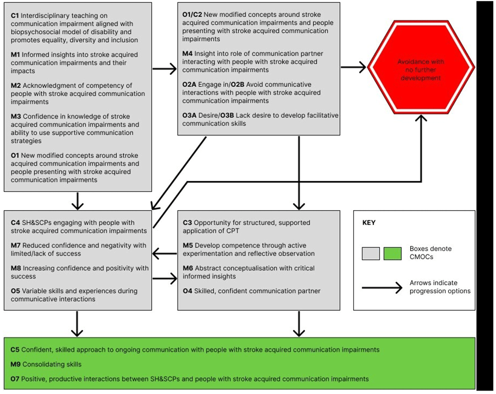 Research on stroke specific CPT predominantly focuses on Aphasia (Chang et al., 2018) with an established evidence base underpinning recommendations for use of CPT for people with chronic aphasia (Simmons-Mackie et al., 2010; Simmons-Mackie et al., 2016). This includes established evidence for use of CPT with medical students (Legg et al., 2005). However, given that there is a high incidence of varied and co-occurring post stroke impairments across the acute to chronic care continuum, these recommendations, while very essential in the management of aphasia, do not comprehensively address the prevailing clinical realities of health and social care professionals or SH&SCPs working with people post stroke. Chang et al. (2018), surveying CPT practices of 122 Australian speech pathologists found that clinicians implementing CPT in clinical stroke settings adapt aphasia specific CPT programmes for use with the broader array of impairments. Correspondingly, in the literature there is increasing recognition of the need to develop CPT for a broader range of acquired impairments that address clinical reality (Chang et al., 2018; O’Rourke et al., 2018; Simmons-Mackie et al., 2016; Tessier et al., 2020). Studies addressing CPT for the broader range of stroke acquired communication impairments with SH&SCPs are emerging (e.g., Baylor et al., 2019; Burns et al., 2017; Forsgren et al., 2017; Mach et al., 2022). While the number of studies is small, they represent an important evolution in CPT development for SH&SCPs and this review aims to build on and potentially enhance this development. In realist review, demi-regularities or “semi-predictable patterns of occurrence” (Cunningham et al., 2021, p. 4) are explored across interventions and domains (such as health care and education) to uncover “families of mechanisms” (Pawson, 2002, p. 344) in programme theory development. Adhering to realist philosophy, it is these “families of mechanisms” (e.g., incentivisation, persuasion) rather than “families of interventions” that trigger change and enact outcomes (Pawson, 2002, p.344; Wong et al., 2012, p. 94). By building on current knowledge and uncovering relevant “families of mechanisms”, this review, may enhance and potentially accelerate development and implementation of stroke specific CPT for SH&SCPs in clinical education.