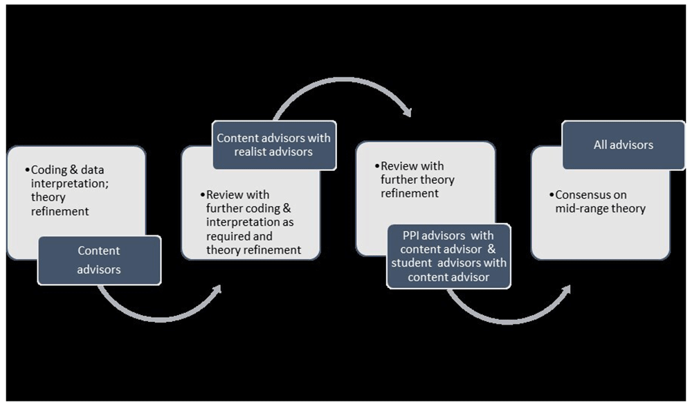 Data synthesis centres on programme theory refinement (Hunter et al., 2022; Pawson et al., 2005; Rycroft-Malone et al., 2012). Once thoroughly familiar with the extracted data sets, interpretations and judgements will be made around: