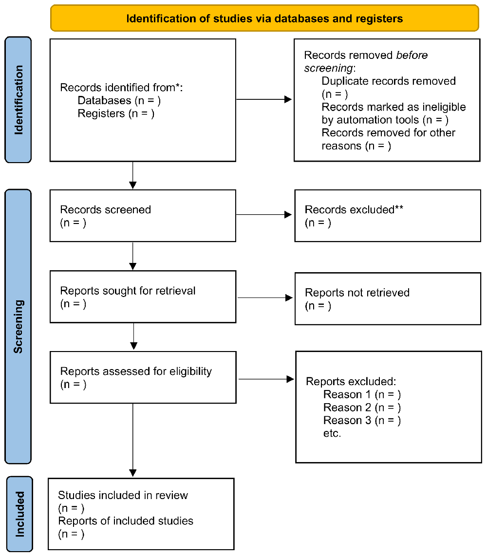 The number of articles retrieved following these steps will be added to the PRISMA-ScR flowchart, as recommended by the JBI (Peters et al., 2020) (Figure 1). Furthermore, a PRISMA-ScR flowchart will be completed following the completion of each search to ensure transparency when mapping the number of records identified and to provide a rationale as to why studies were excluded (Page et al., 2021).