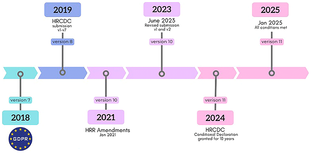 The Health Research Consent Declaration Committee (HRCDC) in Ireland was established following the enactment of the HRRs to address situations whereby obtaining explicit consent from participants in health research, to use their personal data, was not possible. In exceptional cases, this provides a legal mechanism to allow processing of personal data for health research without explicit consent, where it is deemed by the HRCDC that the public interest in conducting the research significantly outweighs the need for explicit consent.