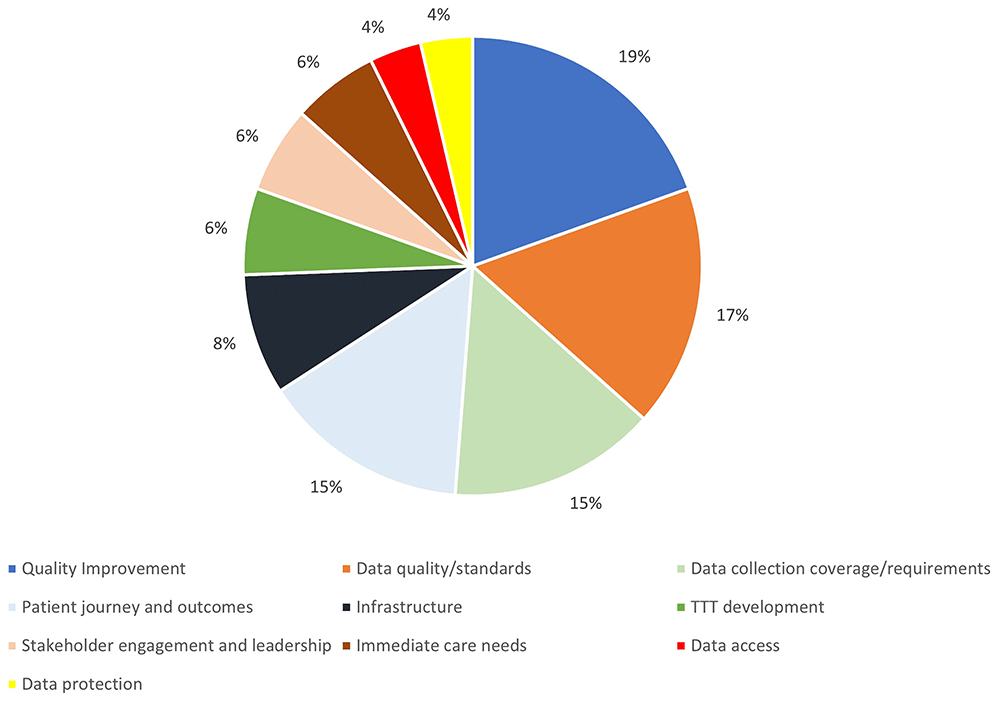Stakeholders generated a total of 102 challenges, divided into 12 categories, i.e. governance, legal, resourcing, leadership, professional roles, IT/software issues, interoperability standards and infrastructure, data issues (unique identifier), consent/rights, operational and outcome challenges. Stakeholders generated 82 Information, Operational, and Infrastructure needs (10 categories), and 84 Communication, Collaboration, and Teamwork needs (13 categories). Core elements informed the upgrading of the MTA database after a cyberattack.
